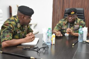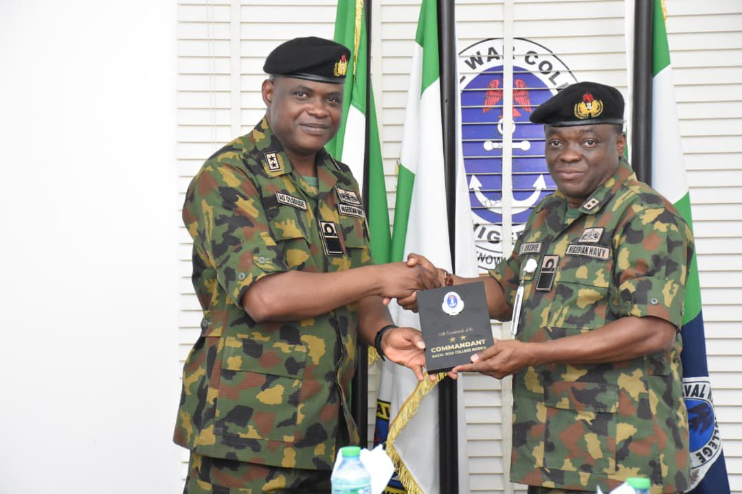 On Thursday 21 August 2025, the Director Project Implementation Monitoring and Evaluation Directorate (D’PIMED), Rear Admiral CD Okehie paid a courtesy visit to the Commandant, Naval War College Nigeria (NWCN), Rear Admiral AO Olodude. During the visit, the Director stated that the purpose of his visit was to have an on-sight inspection of Nigerian Navy projects in Calabar area and appraise the level of completion of these projects.