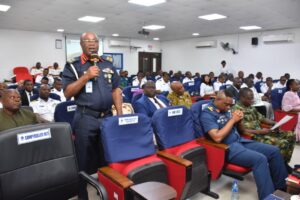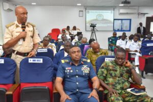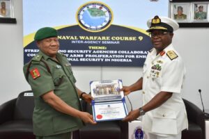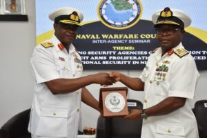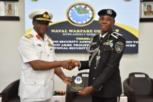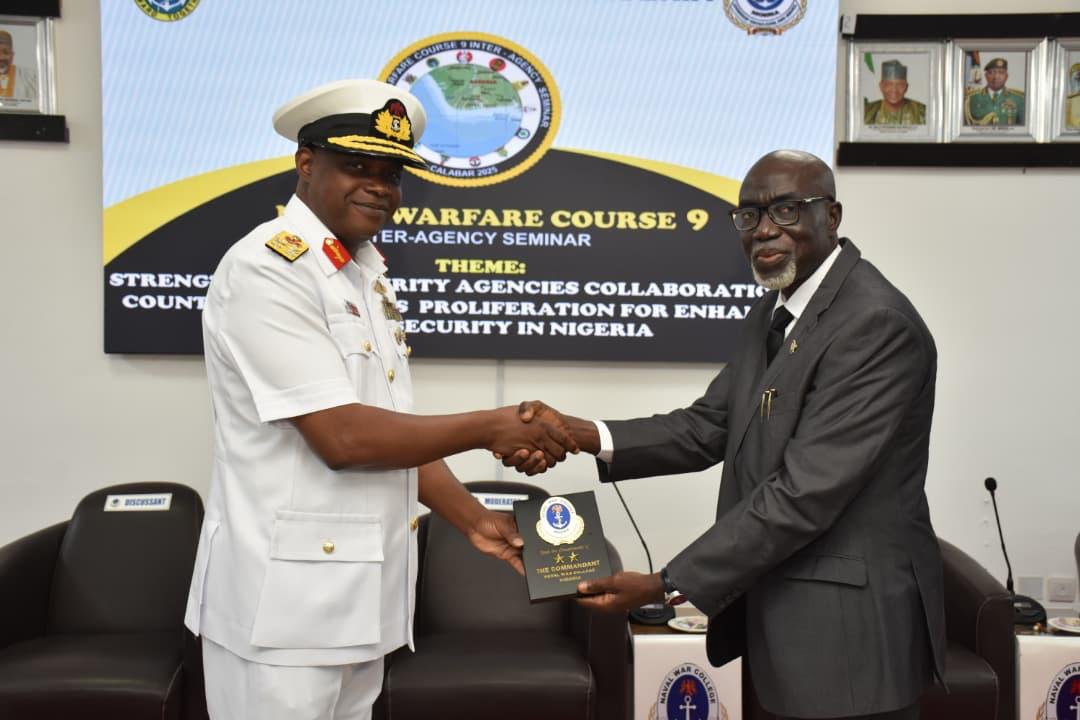 The Naval War College Nigeria (NWCN) commenced the Inter-Agency Module for participants of Naval Warfare Course 9 on 12 August 2025. The module comprised lectures focused on strengthening inter-agency collaboration, delivered by seasoned resource persons drawn from various security agencies and stakeholders. The module culminated in the annual Inter-Agency Seminar, which was held on 14 August 2025. The theme of the Seminar was “Strengthening Security Agencies Collaboration to Counter Illicit Arms Proliferation for Enhanced National Security in Nigeria”. The Seminar, which was held at the NWCN Auditorium, brought together experts and practitioners from various security agencies and relevant stakeholders to foster collaboration and develop effective strategies to counter the flow of illicit arms and mitigate their impact on national security.
